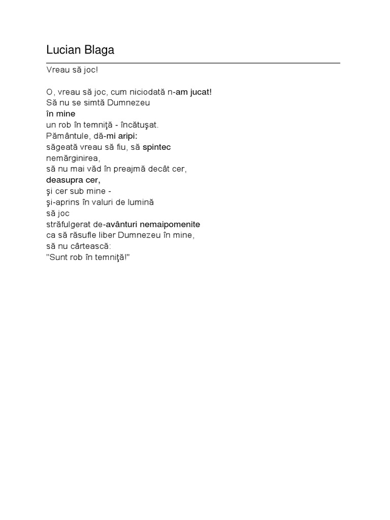Opera lirica ,,eu nu strivesc corola de minuni a lumii se desfasoara spatiul perpetue tensiuni al unei necontenite nazuinte de apropiere,pina la indentificare. Marqué par sa transylvanie natale, lucian blaga, après avoir soutenu sa thèse de doctorat en 1920 à l' université de vienne , élabore au cours des années 1930 une métaphysique de.