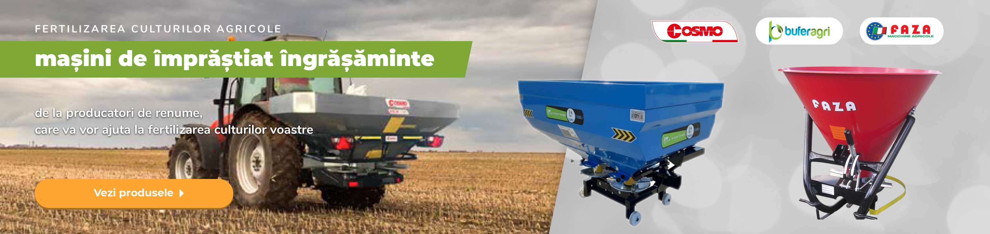 Tractoare, pluguri, freze, stropitori si atomizoare, cositori, masini de recoltat, remorci, tocatoare de resturi vegetale.